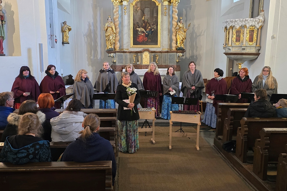 Program jsme zahájily duchovní muzikou, potom jsme se rozlétly do světa a předvedly písně jiných národů včetně afrických a zase jsme se vrátily do Čech úpravami lidových nápěvů a skladeb. Písně s jarní tématikou, milostné, svatební, kánony, veselé i vážné, vše často doprovázené naším pohybem a doprovodem na nástroje, naplnily prostor kostela radostí, veselou energií i dojetím. Regí tentokrát hodně vtipně uváděla jednotlivá čísla, dávala posluchačům hádanky a celý koncert plynul jako voda v jarním potoce.